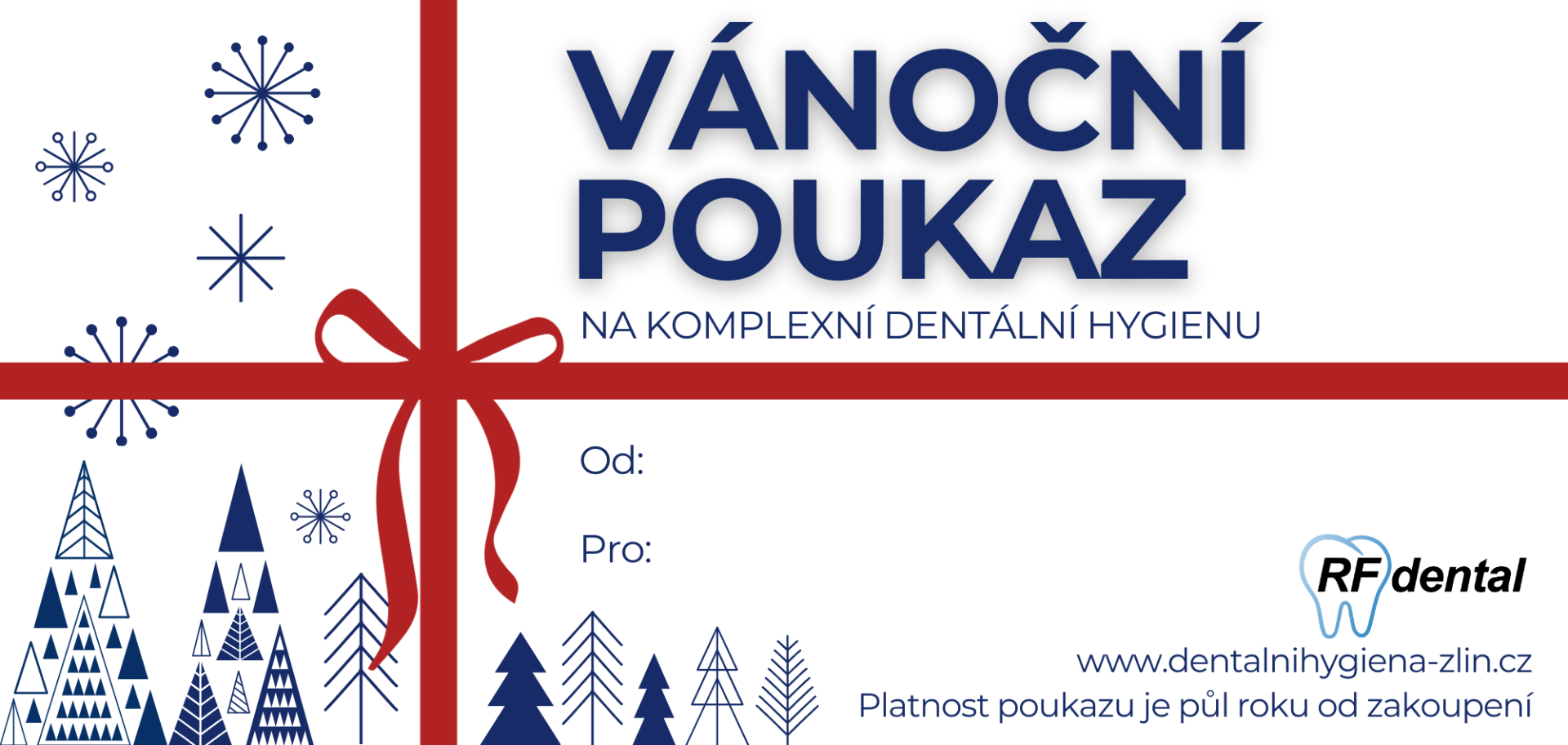 Nejlepší vánoční dárek? Dopřejte sobě nebo svým blízkým krásný úsměv s naším vánočním poukazem za zvýhodněnou cenu! S tímto poukazem zaplatíte pouze 1 200 Kč.